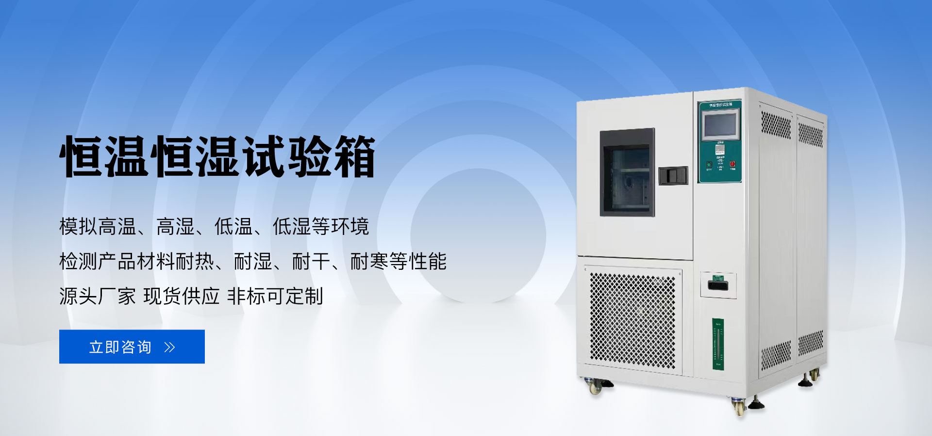 恒温恒湿试验箱,湿热试验箱,恒温恒湿试验机,高低温交变湿热试验箱,调温调湿试验箱,三综合试验箱,高低温交变湿热试验箱,步入式恒温恒湿房,高低温试验箱,高温老化房,各种精密烤箱,冷热冲击试验箱,盐雾试验箱,淋雨试验箱,砂尘试验箱,耐黄变试验箱,日照试验箱,紫外老化试验箱,氙灯耐气候试验箱,臭氧老化试验箱,环境试验箱等。